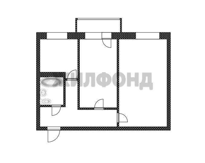 Данный вариант имеет площадь 41,5 квадратнй метр. Планировка соответствует документам - включает две изолированные комнаты и отдельную кухня.