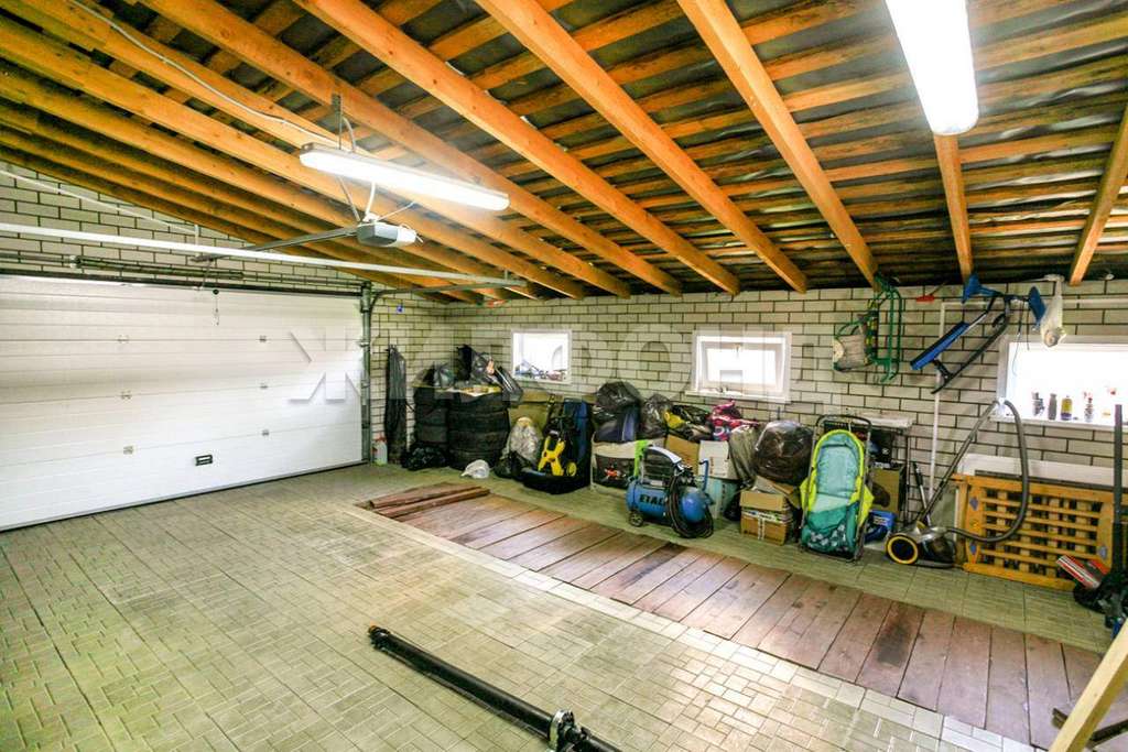 Окна коттеджа выходят на прекрасный вид на окружающие природные ландшафты. Вокруг дома расположен большой участок земли, где создан прекрасный сад и организована зона барбекю для летних вечеров. Также на участке есть место для парковки автомобиля, просторный гараж на 4 автомобиля и отличная баня.